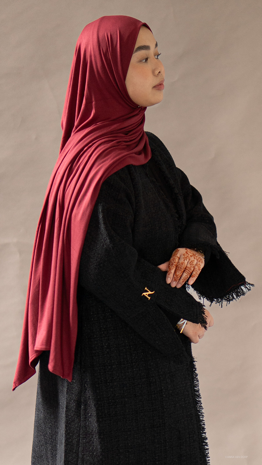 De Abaya heeft zakken en de Abaya valt kleiner uit. Bij twijfel wordt geadviseerd een maat groter te nemen.